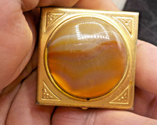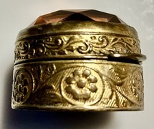 Vintage Pill Box Gilt Metal W/Faceted Amber Glass Lid Villani Italy. (NEL1071).