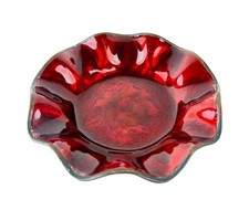 Vintage Enameled Glass Deep Red Trinket / Berry Dish 4.5"