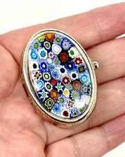 Vintage Murano Glass Pill Box Millefiori Italy Glass Colorful Silver Tone