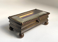 Antique c1870 Bronze Gilt Bevelled Glass Trinket Jewellery Box Velvet Lined