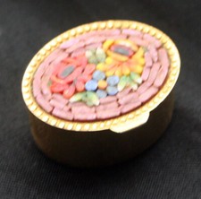 Italian Micro Mosaic vintage pill box glass beads floral pattern on brass box