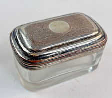 Antique Glass Jar Pillbox Travel Vanity Trinket Box with Silverplated Lid