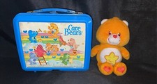 Vintage 1985 Aladdin CARE BEARS Plastic Lunchbox with Plush Care Bare Toy