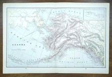 Vintage 1883 ALASKA Map 13"x11" Old Antique Original ANCHORAGE FAIRBANKS JUNEAU