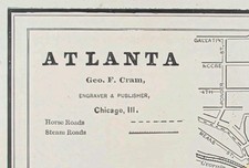 Vintage 1887 ATLANTA GEORGIA Map 14"x11" Old Antique Original FULTON COUNTY GA