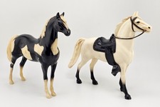 Vtg 1960's Hartland Black/White Tobiano Pinto Horse Toy Figurine Saddle Lot of 2