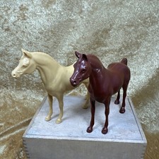 Lot of 2 Vintage Hartland Plastics Brown & Tan Kids Toy Play Farm Horses USA