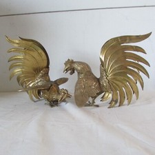 Vintage Pair Brass Fighting Roosters Cocks Mid-Century Heavy Detailed m
