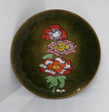 VTG Mid Century Enamel on Copper Hand Painted Flower Plate 4 1/4" M Ratcliff