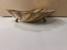 MCM Large Solid Brass Clamshell Candy Dish Tri-Footed Beach Nautical 8.5"