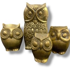 MCM Set Brass Owls Large Medium Small & Smaller x4 Hollywood Regency