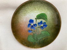VTG Mid Century Enamel on Copper Hand Painted Violet Plate 4 1/4" M Ratcliff