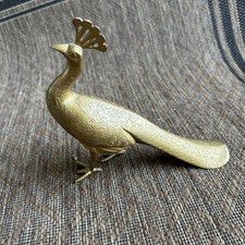Etched Brass Vintage Peacock Figurine Statuette Made In India Mid Century Modern