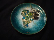 Vintage Mid Century Enamel on Copper Hand Painted Grape Plate 4 1/4" M Ratcliff