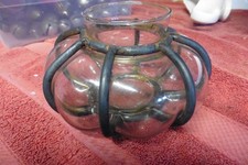 Antique Glass Hand blown Iron Planter Candy trinket water bowl cup