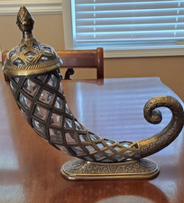 Vintage Abundance Horn Heavy Glass Brass Horn Of Plenty Cornucopia