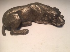 ANTIQUE VINTAGE BRONZE - NICKEL -SILVER METAL HOUND HUNTING DOG GLASS EYES