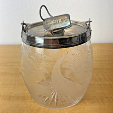 Vintage English Edwardian Silverplate Glass Etched Biscuit Jar