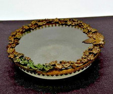 Vintage Glass & Brass Footed Decorative Trinket Dish Dish 6” Diameter Pedals