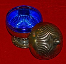 Rare Vintage / Antique Gero Holland Condiment Salt Cellar with Cobalt Blue Glass