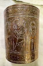 VINTAGE ANTIQUE HAND FORGED EMBOSSED BRASS DRINKING LASSI GLASS CUP.