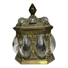 Brass & Hand-Blown Bubble Glass Apothecary Jar / Baroque Design Vintage EUC