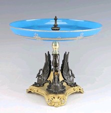 19C Antique French Gilt Patinated Bronze Opaline Glass Tazza Swans