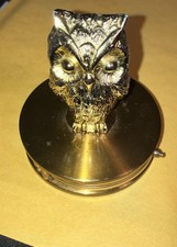 Vintage OWL FIGURE ON ANTIQUE BRASS MAGNIFYING GLASS JEWELERS LOOP DESK DECOR