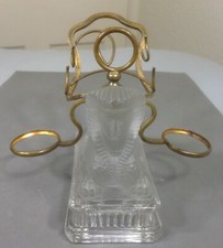 ANTIQUE VINTAGE TABLE SALT SET GLASS EGYPTIAN REVIVAL SPHINX PHARAOH GILT BRASS