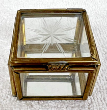 Sweet Vintage Brass Box w Glass Star Etched Top 1.5 Sq 1 1/4 T
