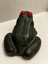 Antique Cast Iron Frog Doorstop Original Paint 4-5lbs Red Glass Eyes Rare