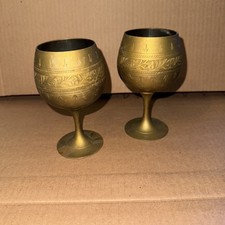 Antique Unique Hand Carved Brass Vintage Wine Glass/Goblet Made In India