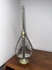 Large Antique Glass With Metal Overlay 10 3/4 Inches Tall Perfume Bottle