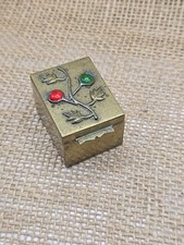 Antique Brass & Drop Glass Stamp Box 1.75" China