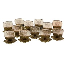 Antique Set Of Ten Czech Intaglio Glass Place Card Holders, C. 1920