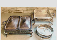 Vintage SILVERPLATE Dishes PYREX ANCHOR HOCKING Glass Antique Ornate Metal 9 PCS