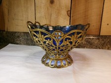 Vintage Ornate Brass with Cobalt Blue Glass Insert Fruit Bowl