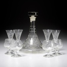 Etched Thistle Scotch Whisky Wine Cordial Decanter w Matching Snifter Glasses 9p