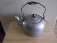 Antique Vintage Early 1900's Aluminum Large Water Kettle Teapot Ceramic