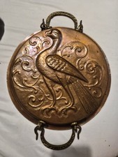 Antique Aluminum Brass Serving Dish With Phoenix Style Bird