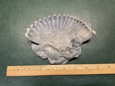 Antique Art Deco 1920's Cast Aluminum Tray Trinket Dish Lady w/ Feather Fan