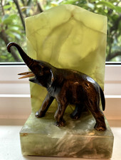 Antique Bronze Elephant & Translucent Green Onyx Bookend
