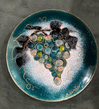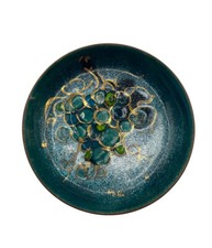 Vtg mid-century enamel copper bowl featuring grape cluster design by M. Ratcliff