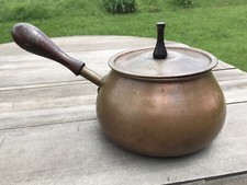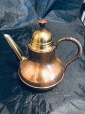 M holland mid century copper and brass 8 in teapot wood finial wrapped handle