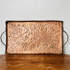 Antique Hammered Solid Copper Serving Tray Patina Fish Lake Cabin Rustic Lodge