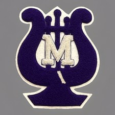 VTG “M” Logo Lire Omega Mid Century Purple White Chenille Varsity Letter Patch