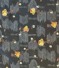 Vintage Knit Fabric Asian Theme Rickshaw Black BTY Sheer A7