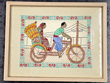 Hand Stitched Naksha Embroidery Art Framed Folk Village Rickshaw Scene