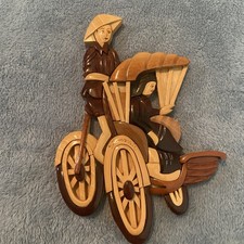 Vintage Wood Art Rickshaw 8" Wall Hanging