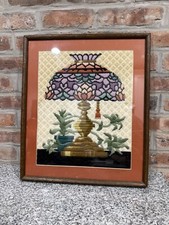Tiffany Style Needlework Stained Glass Lamp Crewel Vtg Framed